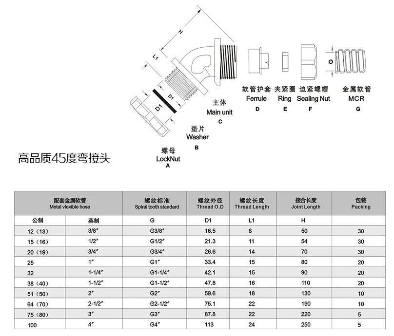 45°弯角金属软管接头